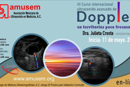Curso de ultrasonido Doppler en territorios poco frecuentes Inicia 11 de mayo, 2026 Dra. Julieta Crosta El Colegio de Médicos Ultrasonografístas, A.C. otorga 20 Puntos para Validación Curricular Infor...